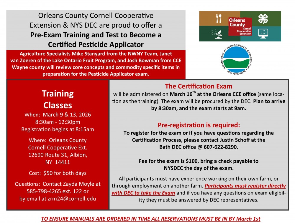 2026 Orleans County - DEC Certified Pesticide Applicator License Exam